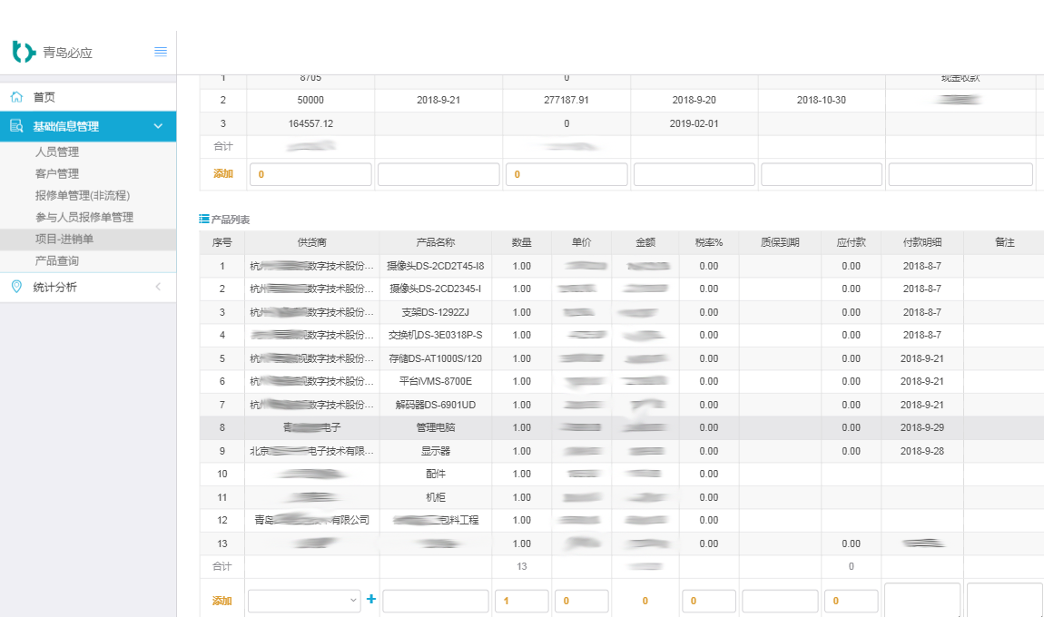 實現(xiàn)簡單進銷,記錄項目進銷産品管理(lǐ)